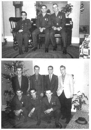 Two 1959 photos of Jim Cordero, Bob Botelho and Paul Richard was taken when they were home on leave after their basic training. Jim enlisted in the Air Force, Bob and Paul enlisted in the Marine Corp. The two photos were taken in December of 1959 at my parents house on Green Street.