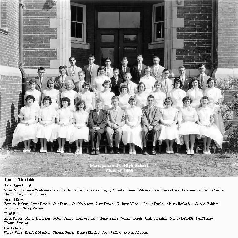Photo of the Mattapoisett Junior High School class of 1956.
